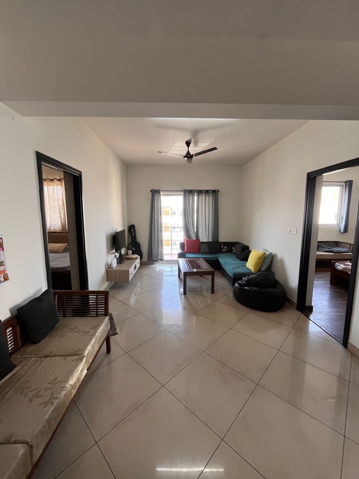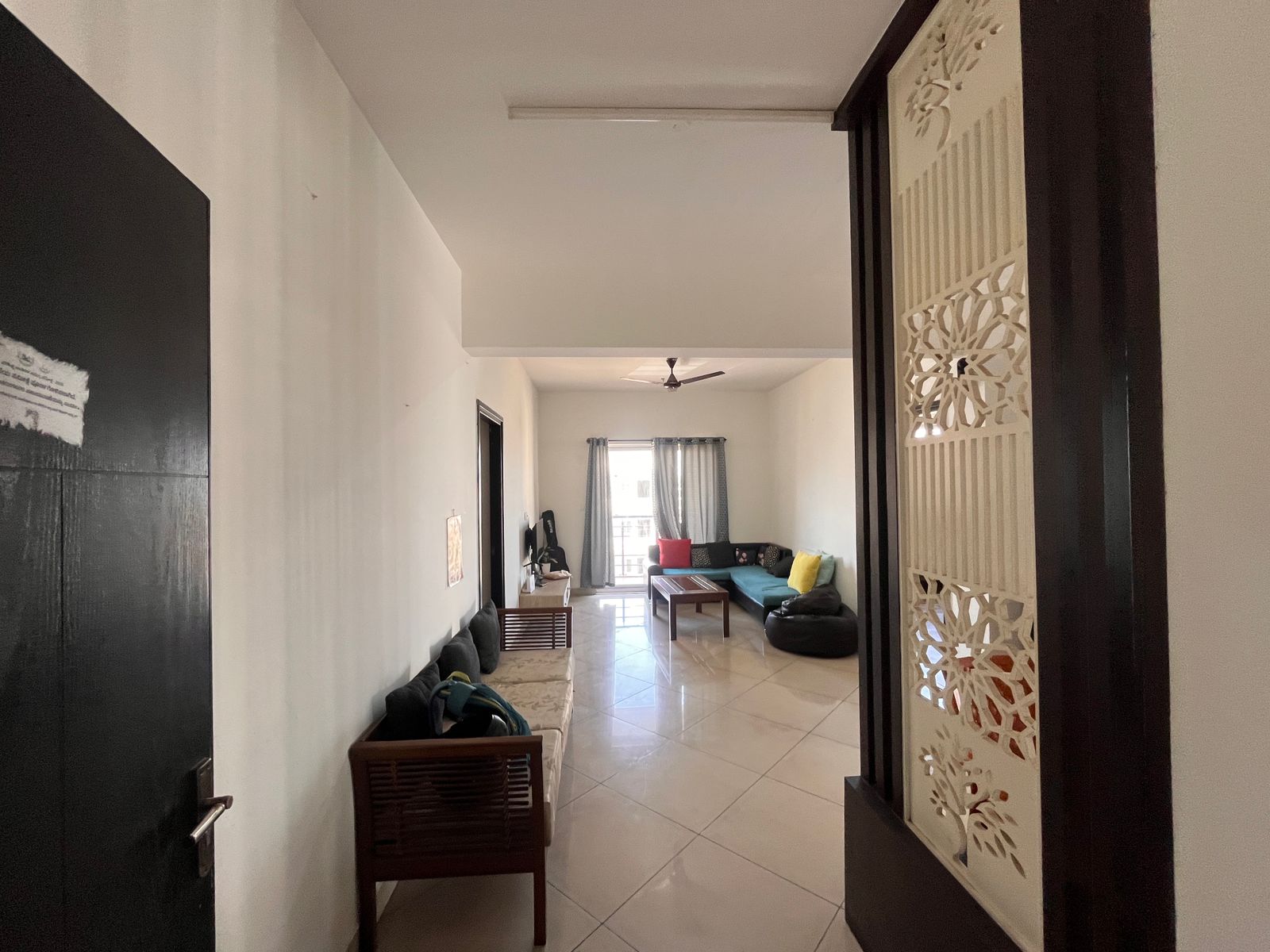 Furnished with: lights, fans, TV, bed, wardrobes, geysers, sofa, washing machine, stove, fridge, water purifier, modular kitchen, curtains, exhaust fan. Available for families, bachelors, or women tenants. Electricity & water extra.