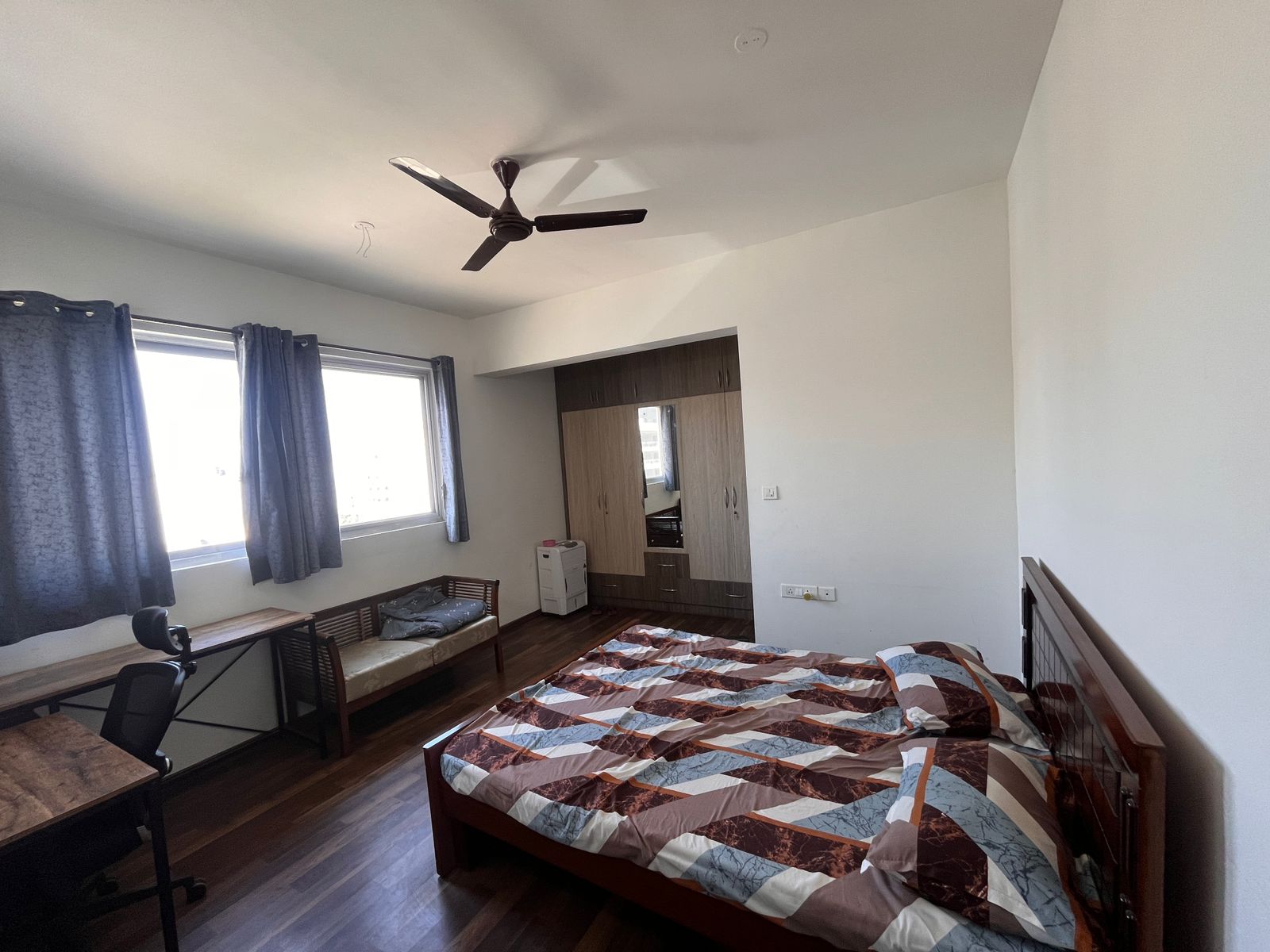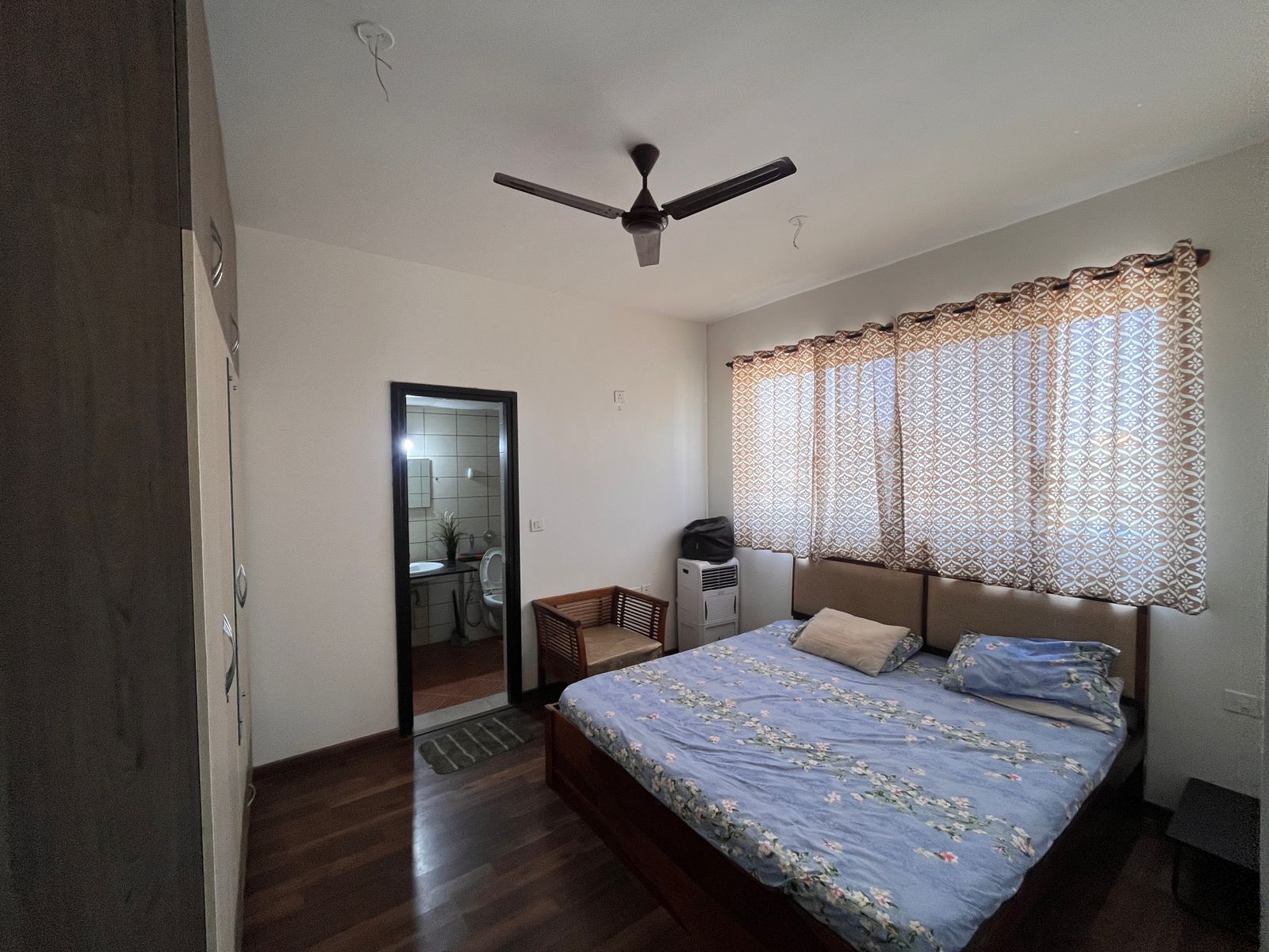 Furnished with: lights, fans, TV, bed, wardrobes, geysers, sofa, washing machine, stove, fridge, water purifier, modular kitchen, curtains, exhaust fan. Available for families, bachelors, or women tenants. Electricity & water extra.